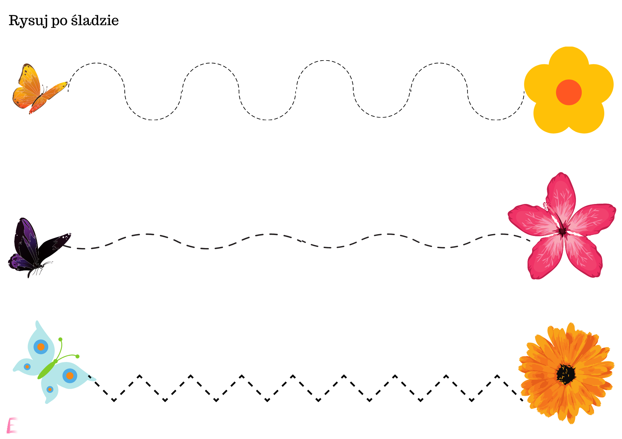 Karty ćwiczeń zgodne z filozofią pedagogiki Marii Montessori. Ćwiczenia małej motoryki przez zabawę. Oferta zawiera 9 stron ćwiczeń motorycznych (rysowanie po śladzie, kolorowanki oraz ćwiczenia w wycinaniu i dobieraniu do pary)