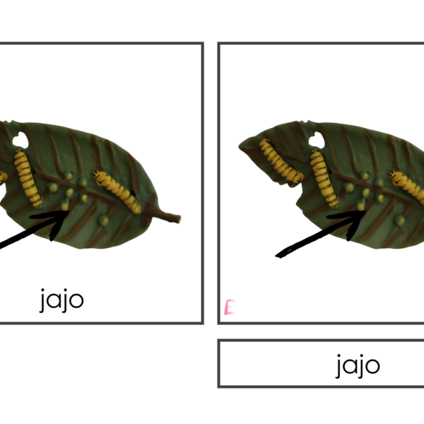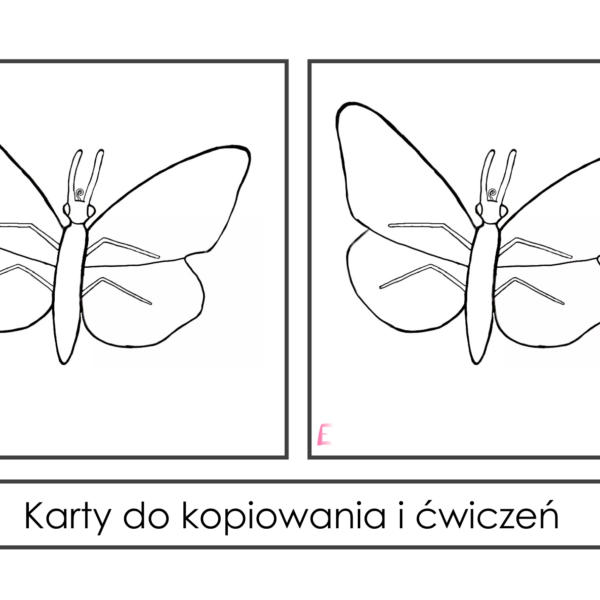 Karty trójdzielne – Cykl rozwojowy motyla i jego budowa. Dzięki nim wprowadzisz nowe pojęcia, zwiększysz, wzbogacisz i poszerzysz słownictwo dziecka wg lekcji trójstopniowej Montessori.