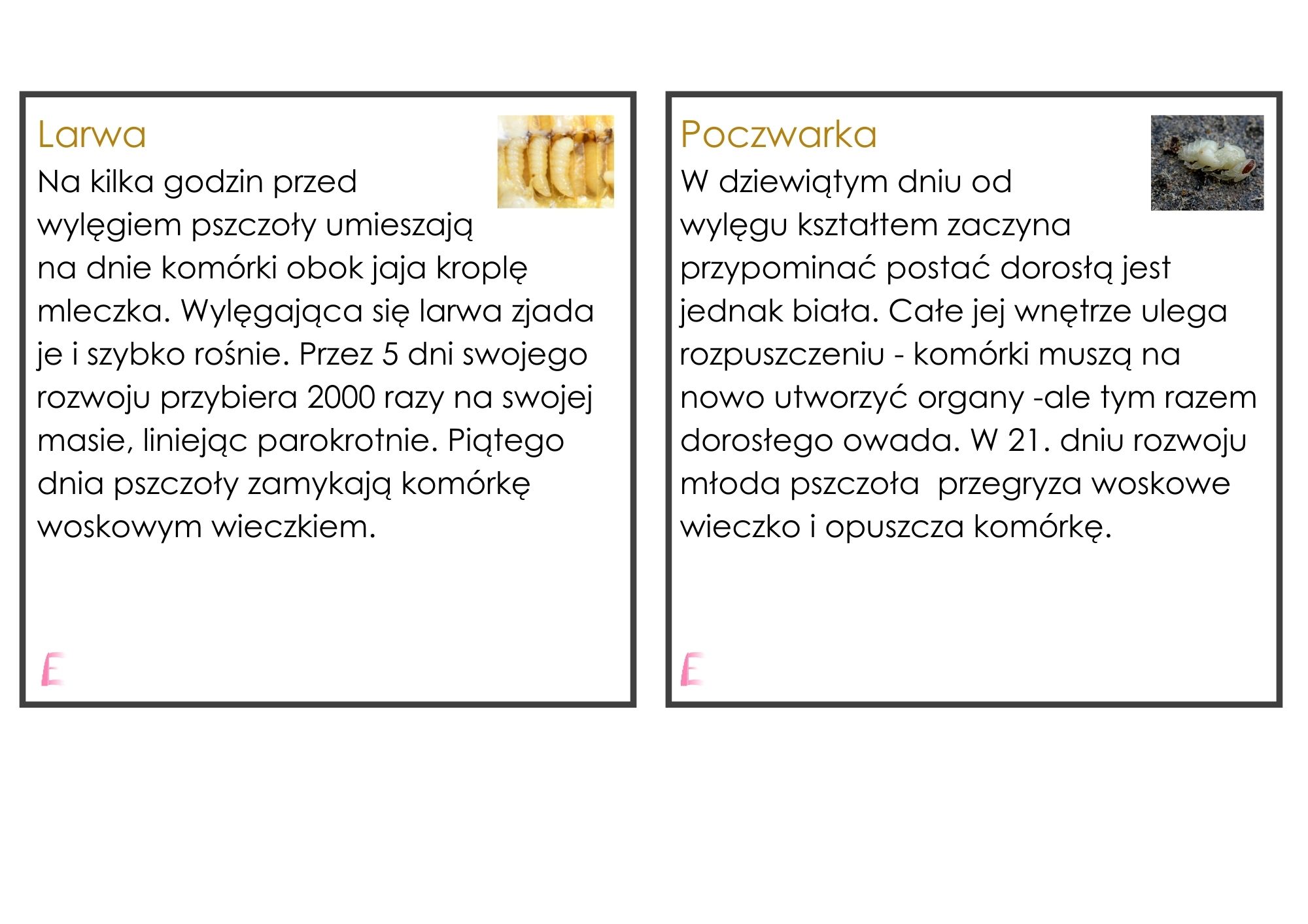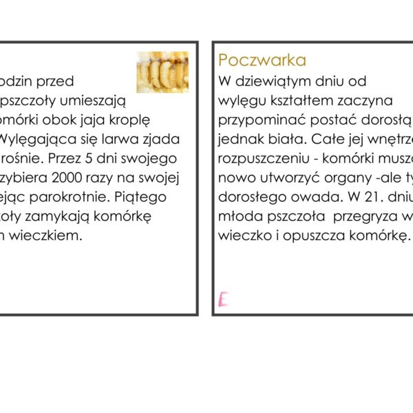 Cykl rozwojowy pszczoły i budowa pszczoły – karty trójdzielne