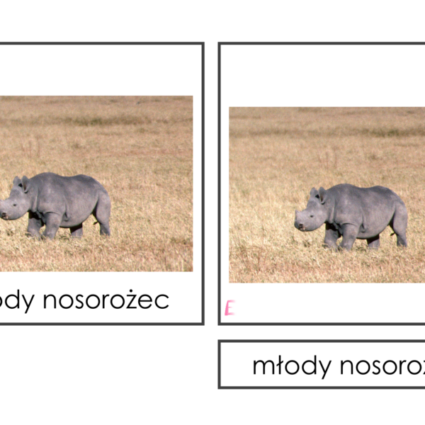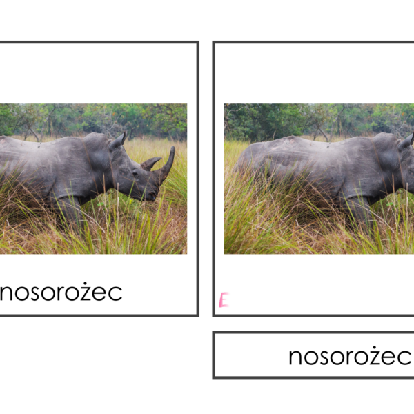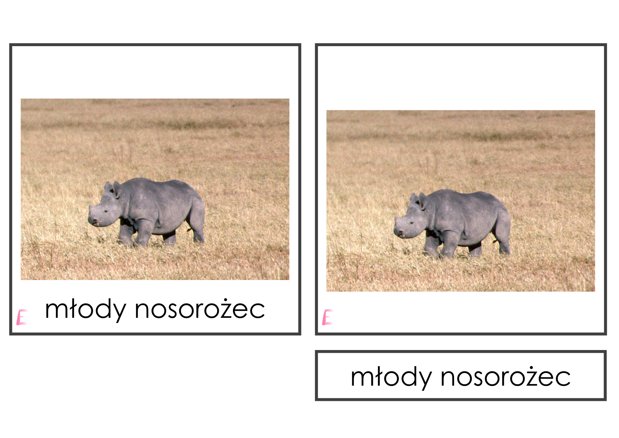 Karty trójdzielne Montessori ze zwierzętami Afryki i ich młodymi. Dzięki nim wprowadzisz nowe pojęcia, zwiększysz, wzbogacisz i poszerzysz słownictwo dziecka wg lekcji trójstopniowej Montessori.