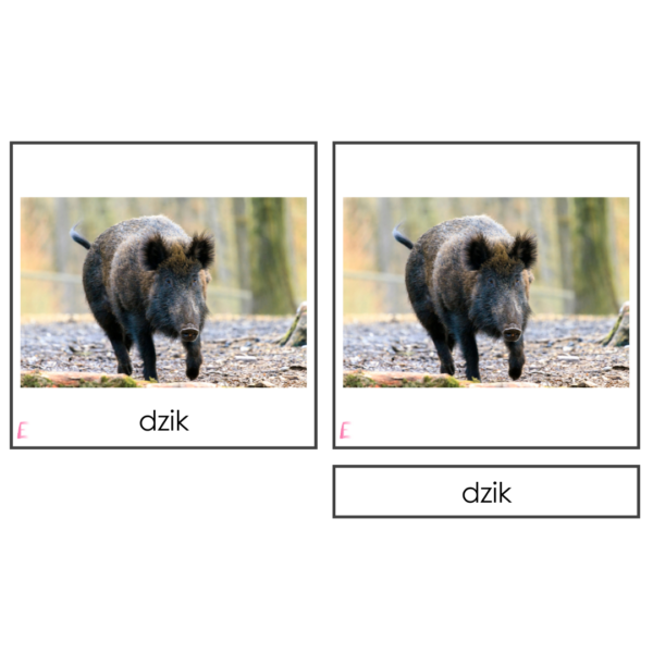 Karty trójdzielne Montessori ze zwierzętami mieszkającymi w polskich lasach. Dzięki nim wprowadzisz nowe pojęcia, zwiększysz, wzbogacisz i poszerzysz słownictwo dziecka wg lekcji trójstopniowej Montessori.