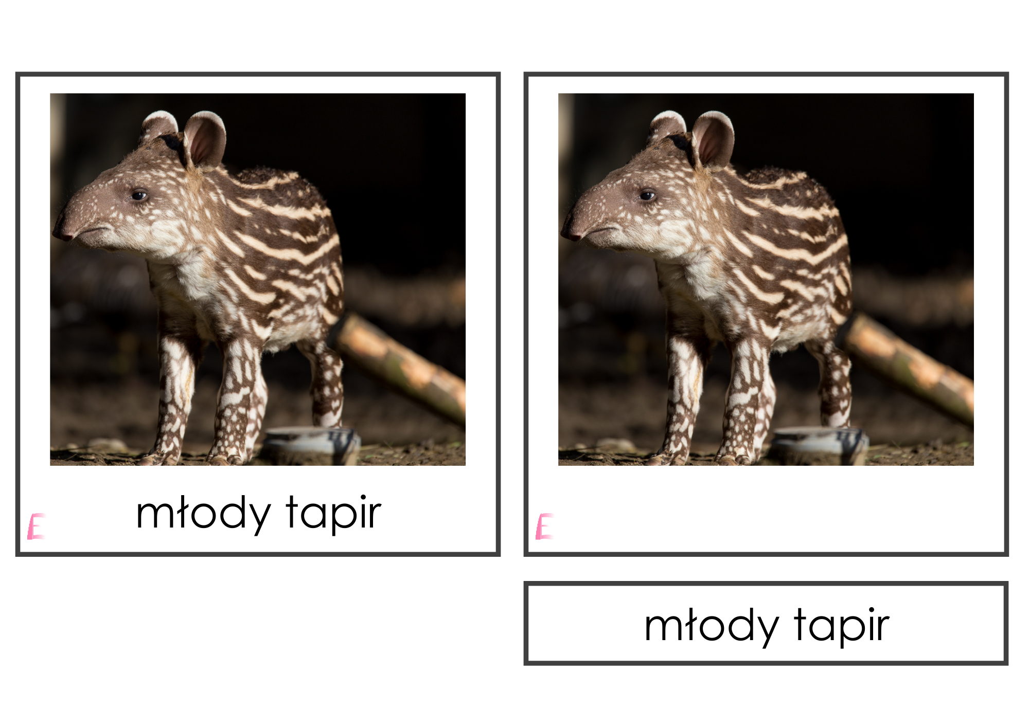 - 9 zestawów kart trójdzielnych (Zwierzęta Europy, Zwierzęta Azji, Zwierzęta Afryki, Zwierzęta Antarktydy, Zwierzęta Ameryki Północnej, Zwierzęta Ameryki Południowej, Zwierzęta Australii, Zwierzęta świata i ich tropy, Zwierzęta świata i ich skóry)